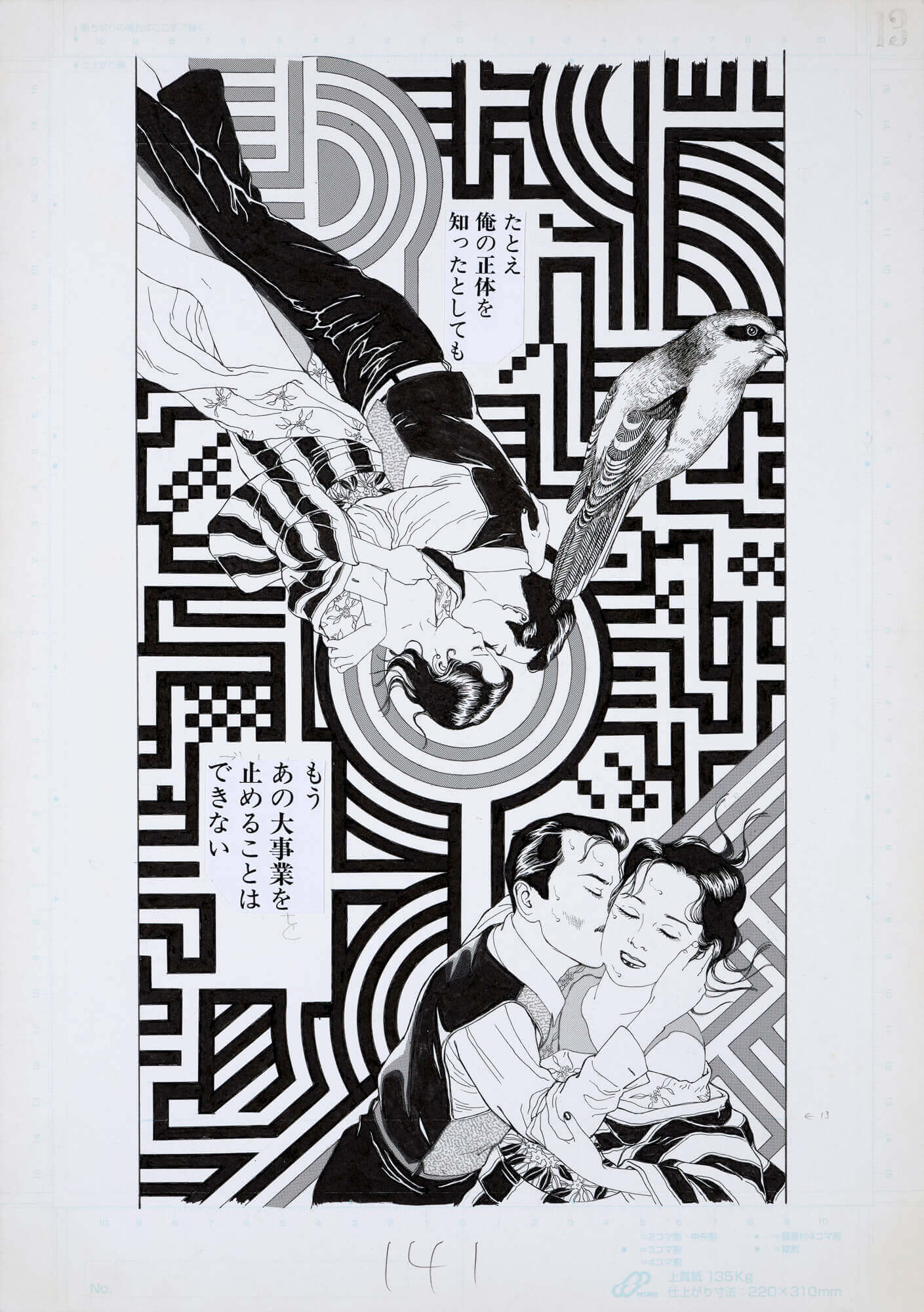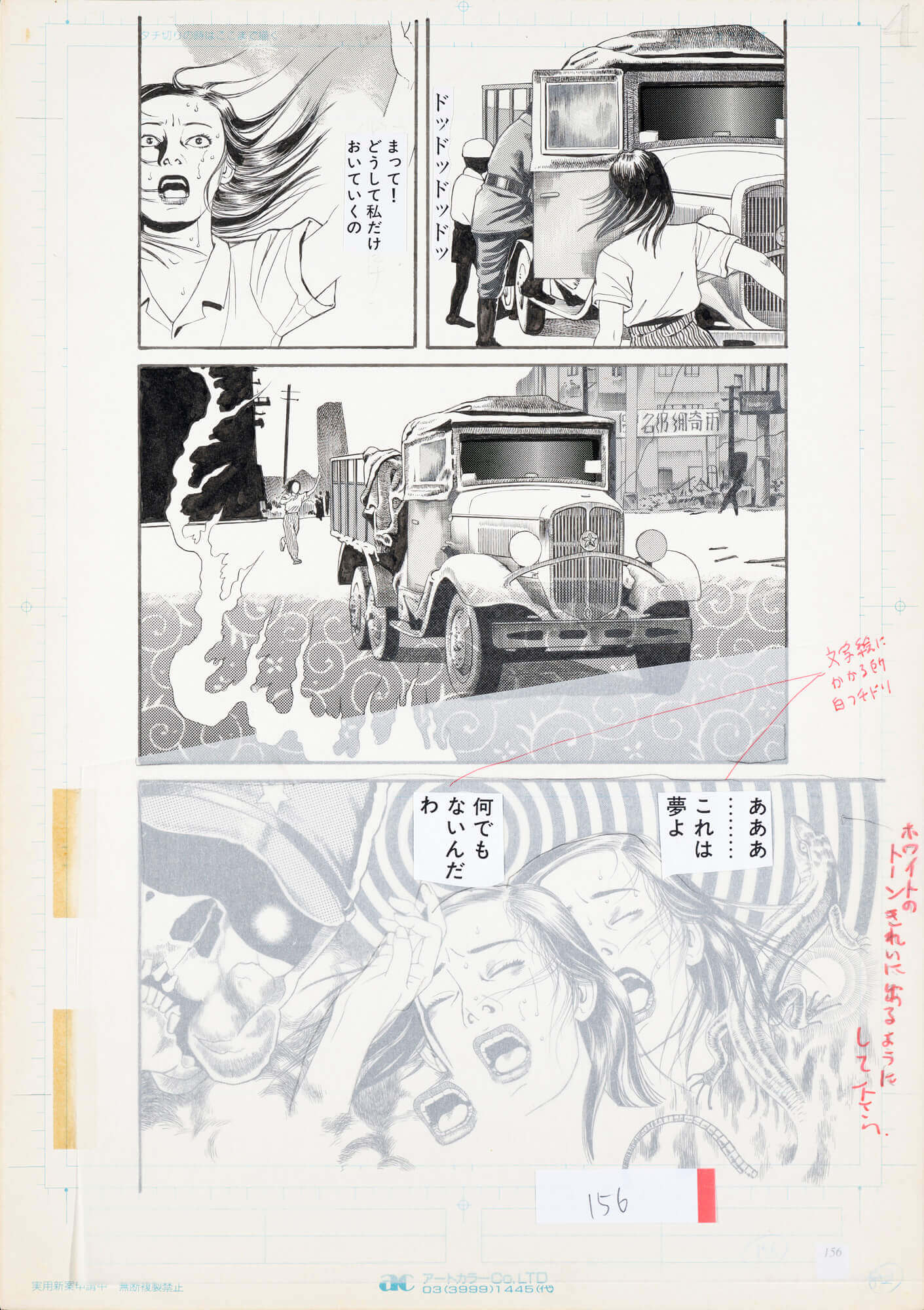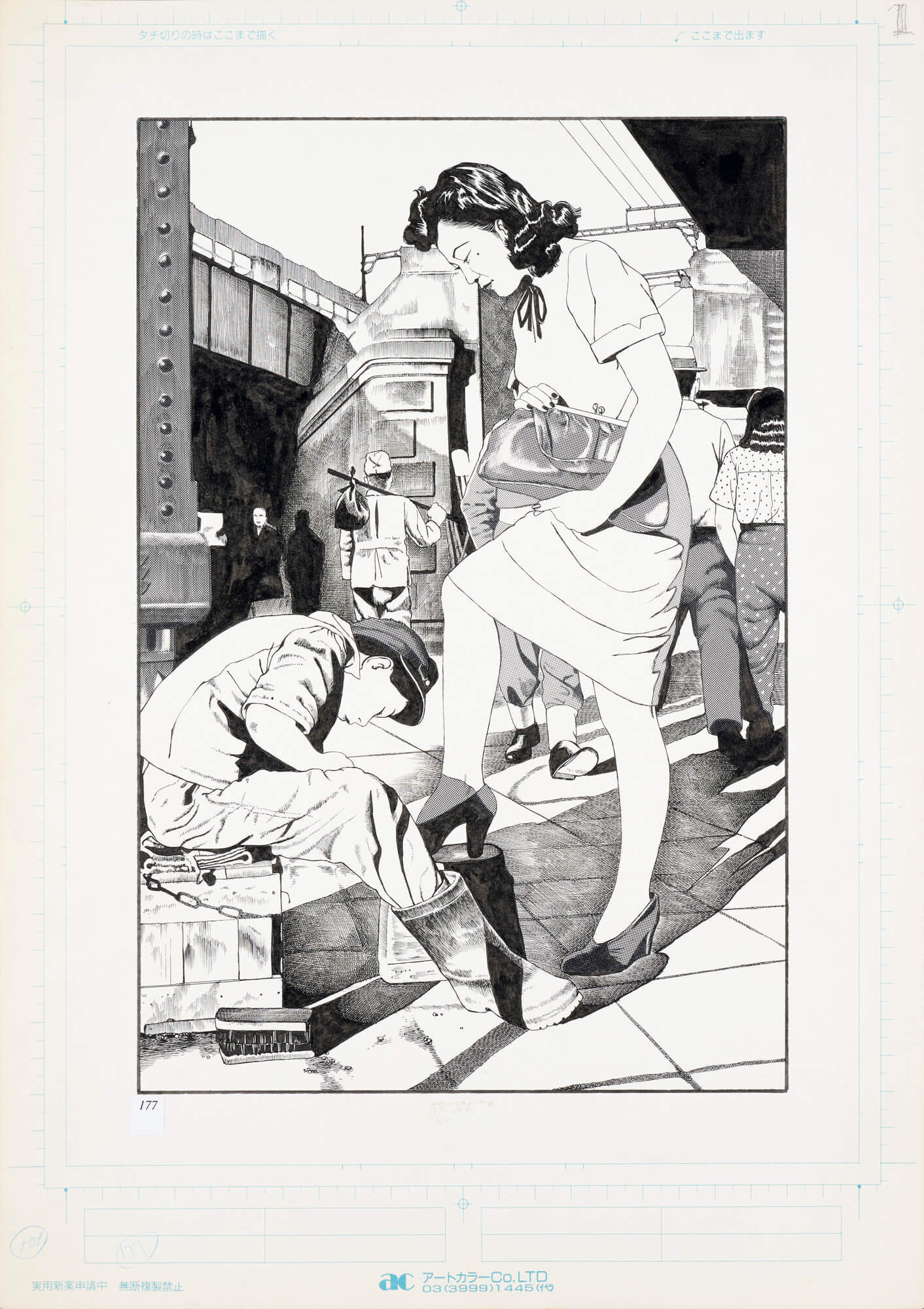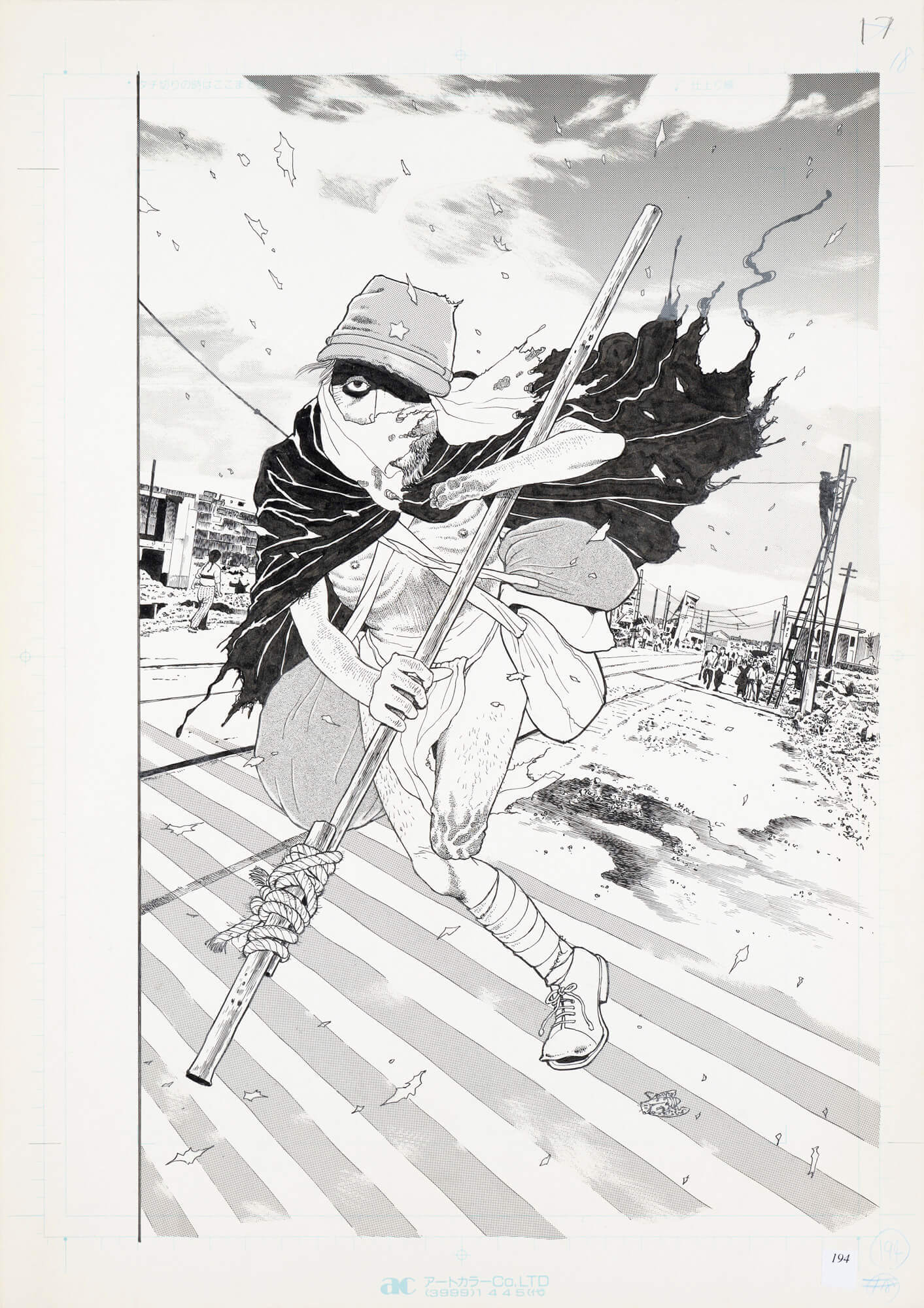 『無抵抗都市』(初出・『月刊漫画ガロ』1993年5・6・11・12月号) 敗戦後の東京闇市を舞台に描かれた中編作。冒頭にある「連続婦女暴行殺人の色白の色魔K」は当時世間を騒がせた死刑囚、小平事件の小平義雄のことで、主人公セツ子につきまとう平井と名乗るナゾの奇形の小男にその存在を重ねている。ガダルカナルに出兵したまま帰らぬ夫を待ちながら、飢えと絶望の極限状態の中で生きるセツ子とその息子の前に突然現れた平井に肉体と精神を翻弄され、仕舞いには平井に殺された息子の人肉とは知らずに焼き鳥として闇市で売り、挙げ句の果てに平井の子を妊娠してしまい地獄の底に突き落とされる。 敗戦の惨めさと猟奇的悪夢を背景に描いた人間像は中編ながらも優れたストーリーとして評価も高く、中期の代表作となっている。これ以降、ストーリー性の高い長編作品(原作付きを含む)を意欲的に描いている。