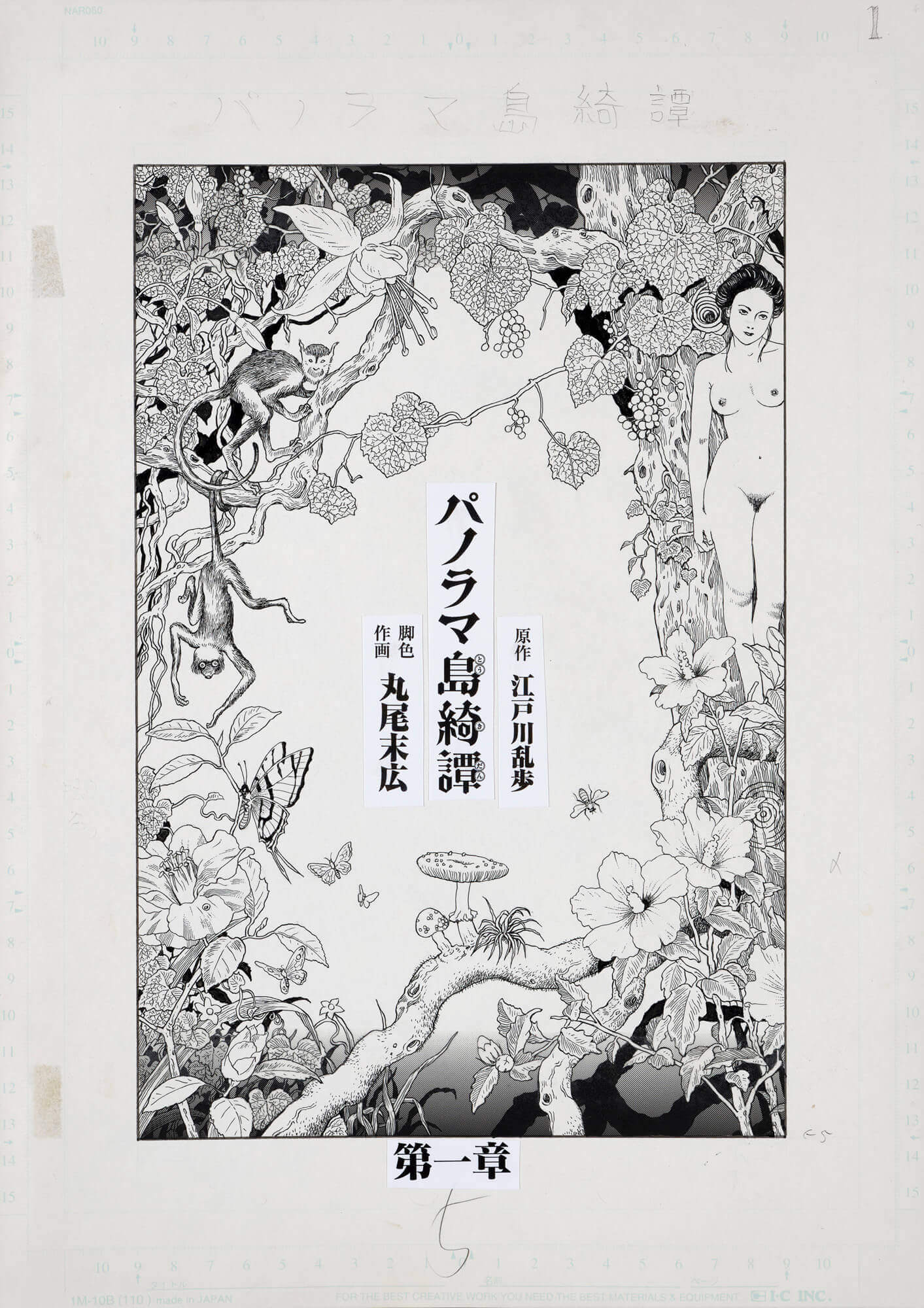 江戸川乱歩の名作『パノラマ島綺譚』をコミカライズ。乱歩のコミカライズは数多くあるが『パノラマ島綺譚』はこれまで発表されることがなかったが、この独特な怪奇幻想小説を見事にマンガで表現。原作に忠実ながらも明智小五郎を登場させたりと乱歩ファンの心をくすぐる演出も散りばめられ、そして幻想と狂気が作り上げた楽園パノラマ島の描写は目を疑うばかりの美しさ。その美しさの裏で息を顰める人工物に宿る狂気が一体となって解放される快感が、これ以上ない最高のビジュアルとして目の前に広がる。これまで誰もなしえなかった丸尾末広の『パノラマ島綺譚』コミカライズは、乱歩の「現世は夢 夜の夢こそ真実」という言葉と見事に融合する傑作。 『コミックビーム』2007年7月号より連載開始。2008年単行本化(KADOKAWA)。2009年「第13回手塚治虫文化賞新生賞」を受賞、「陶酔と狂気、幻想と惑乱に満ちた世界を装飾美豊かに視覚化し、新たな魅力を吹き込んだ」と評価された。