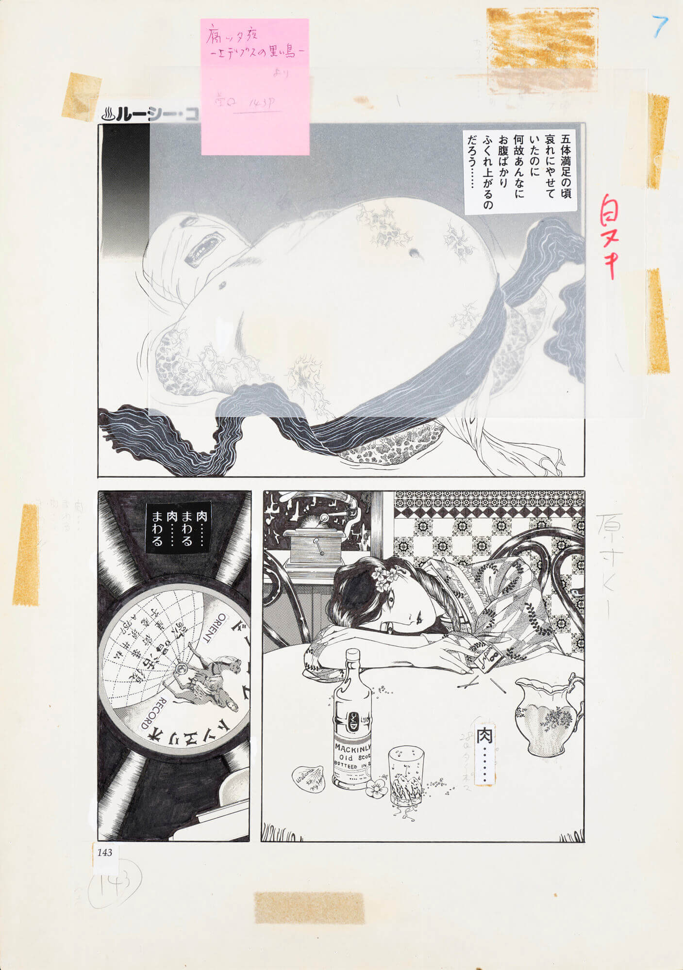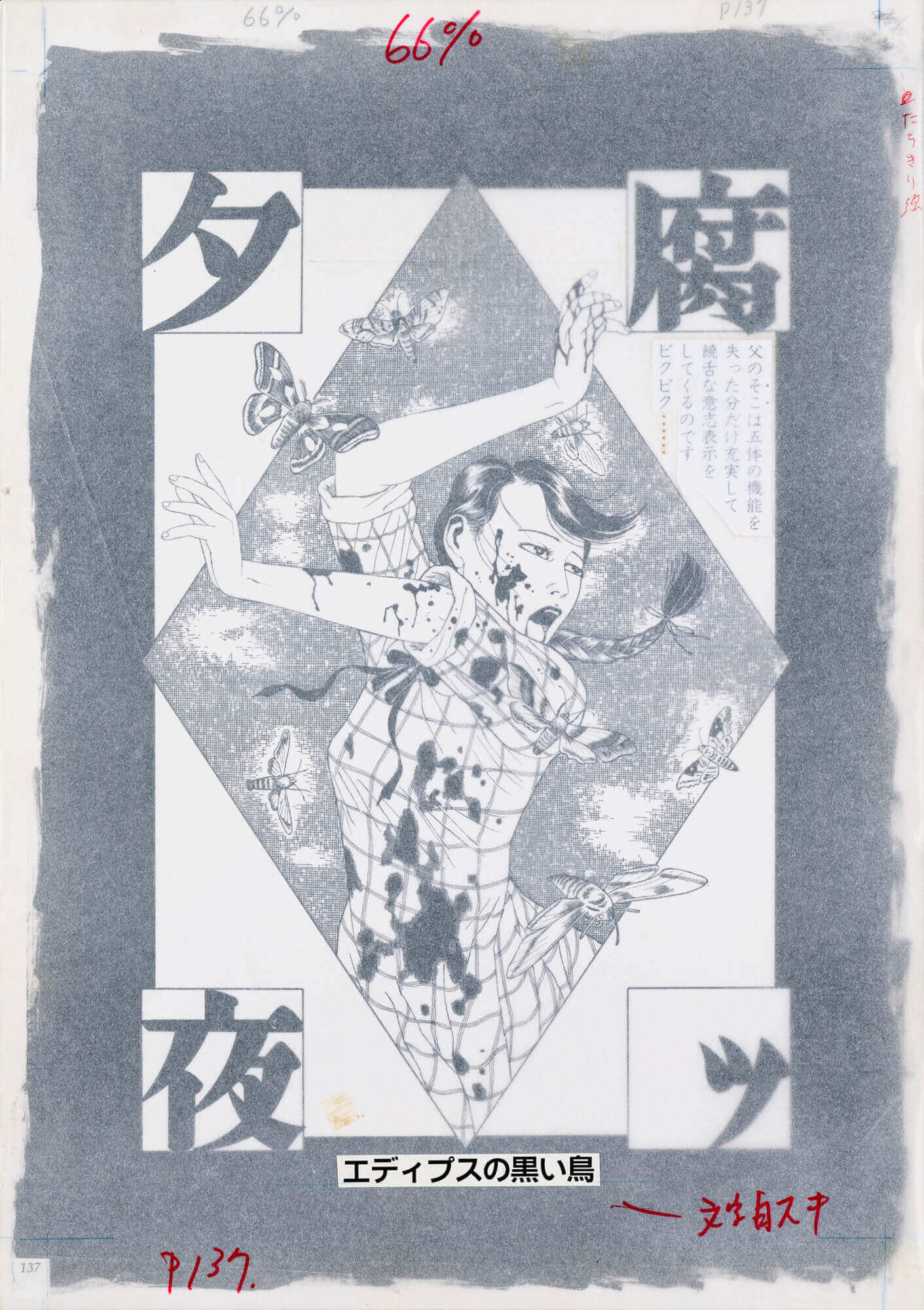 『腐ッタ夜』(初出・『漫画ハンター』1981年4月号) 『腐ッタ夜 エデイプスの黒い鳥』(初出・『漫画ピラニア』1981年12月号) 『腐ッタ夜 ちんかじょん』(初出・『漫画快楽号』1982年1月号) 1981年から1982年にバラバラの雑誌に掲載された3連作。江戸川乱歩の『芋虫』や谷崎潤一郎作品を背景に、高畠華梢を彷彿させる密度の濃い美しい筆致で描かれたエログロを含む猟奇的な禁断の愛。表の世界では決して許されない人間のタブーを土着性と淫靡性を十分に絡めながらの見せ方には、目を背けたくとも凝視してしまう強い魔力がある。美と醜悪の狭間に現れる人間の本性を美しすぎる絵柄で表現する作品は海外でも人気が高い。 当時、音楽や演劇の世界にも影響を与えたアングラ耽美系漫画の代表作家とも言える丸尾末広の『少女椿』と並ぶ、美しすぎる初期問題作。